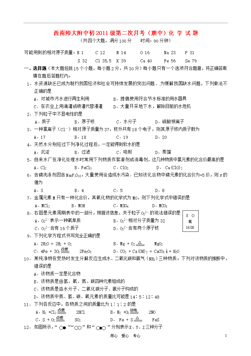 试题-重庆-2010_重庆市西南师大附中2011届九年级化学上学期期中考试