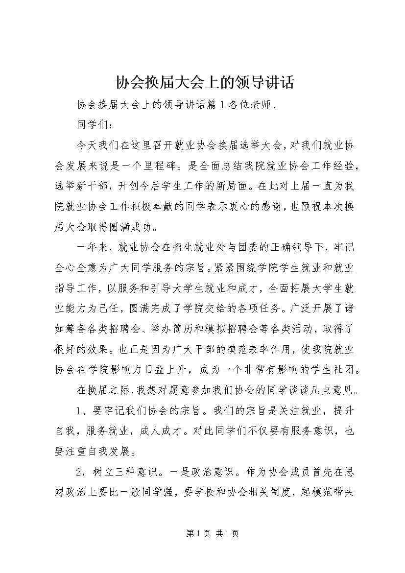 协会换届大会上的领导讲话