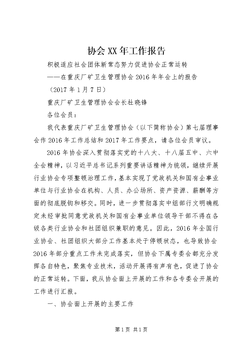 协会XX年工作报告