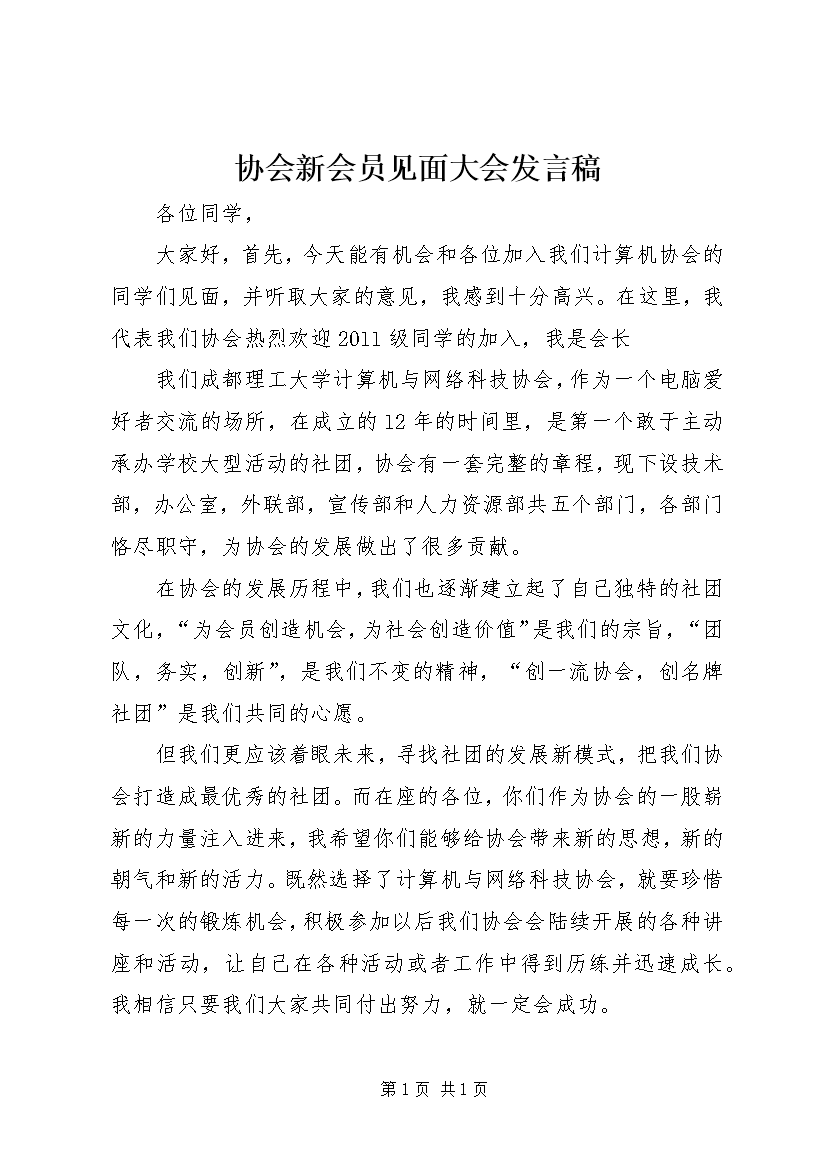 协会新会员见面大会发言稿 (3)