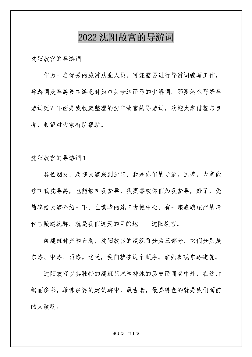 2022沈阳故宫的导游词