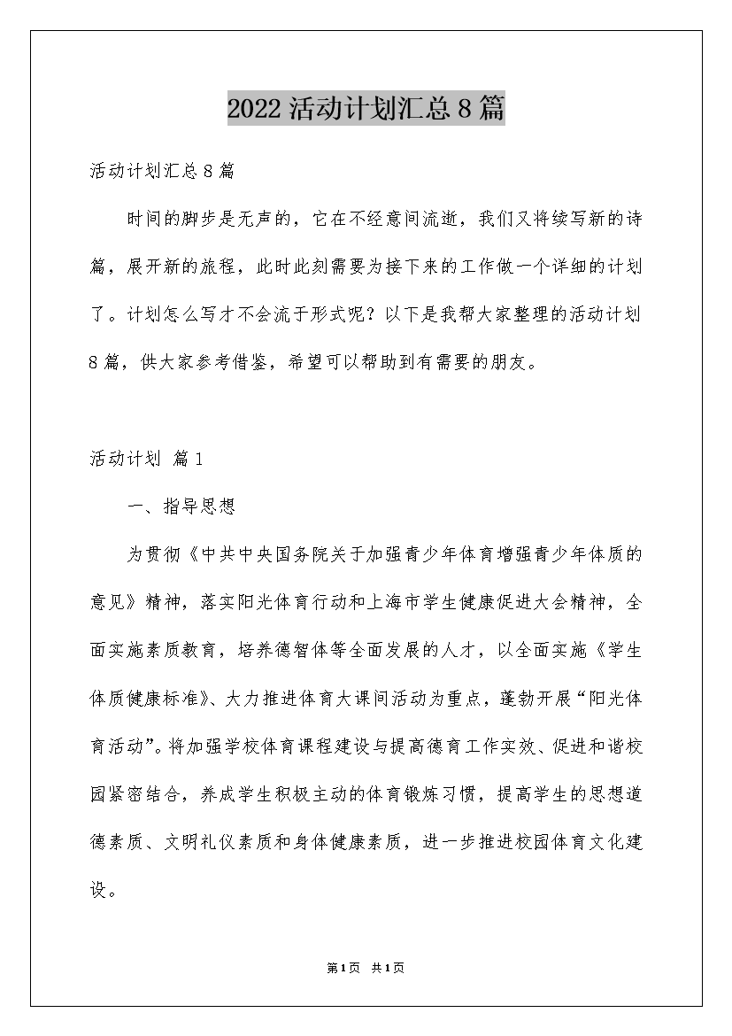 2022活动计划汇总8篇