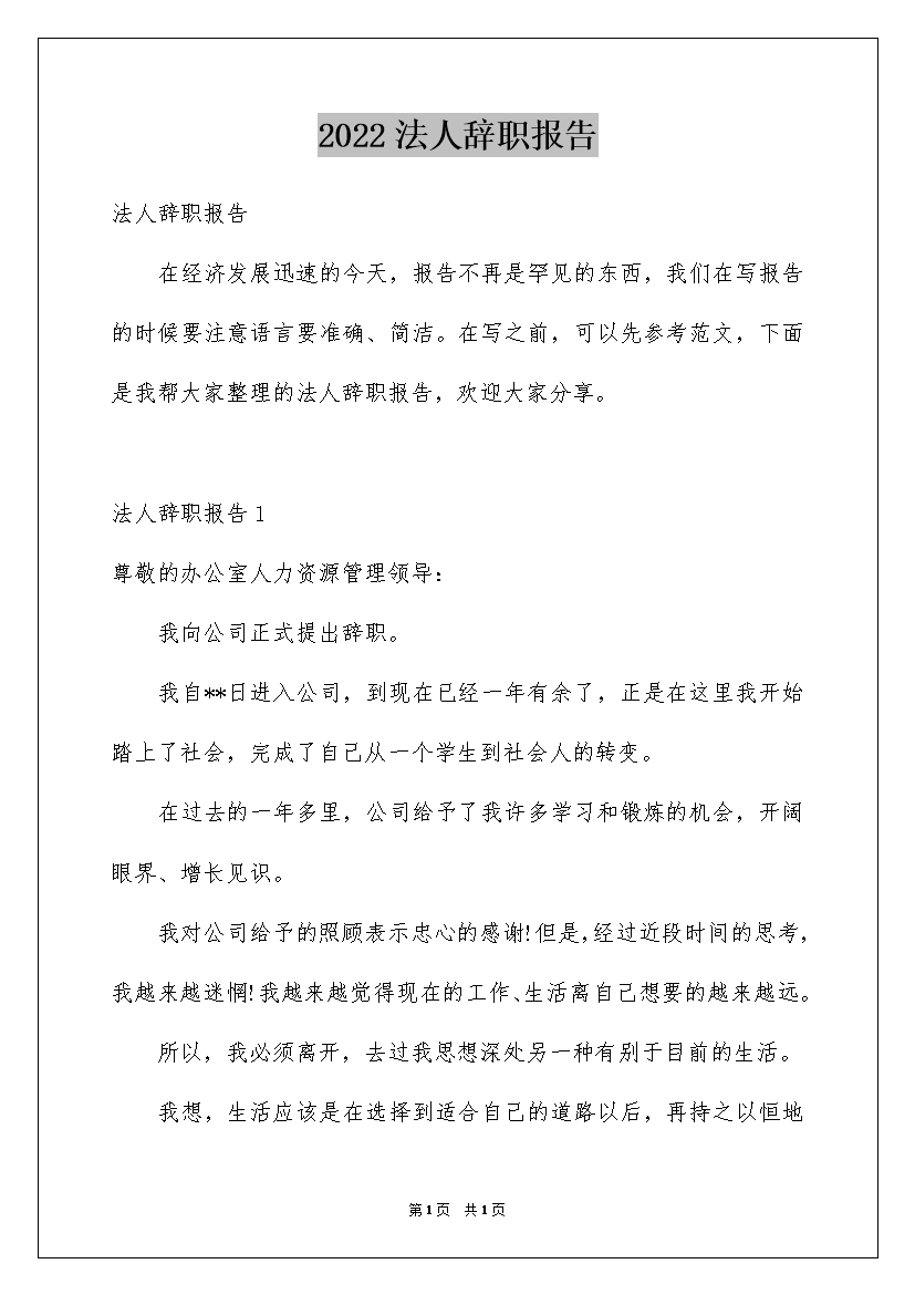 2022法人辞职报告
