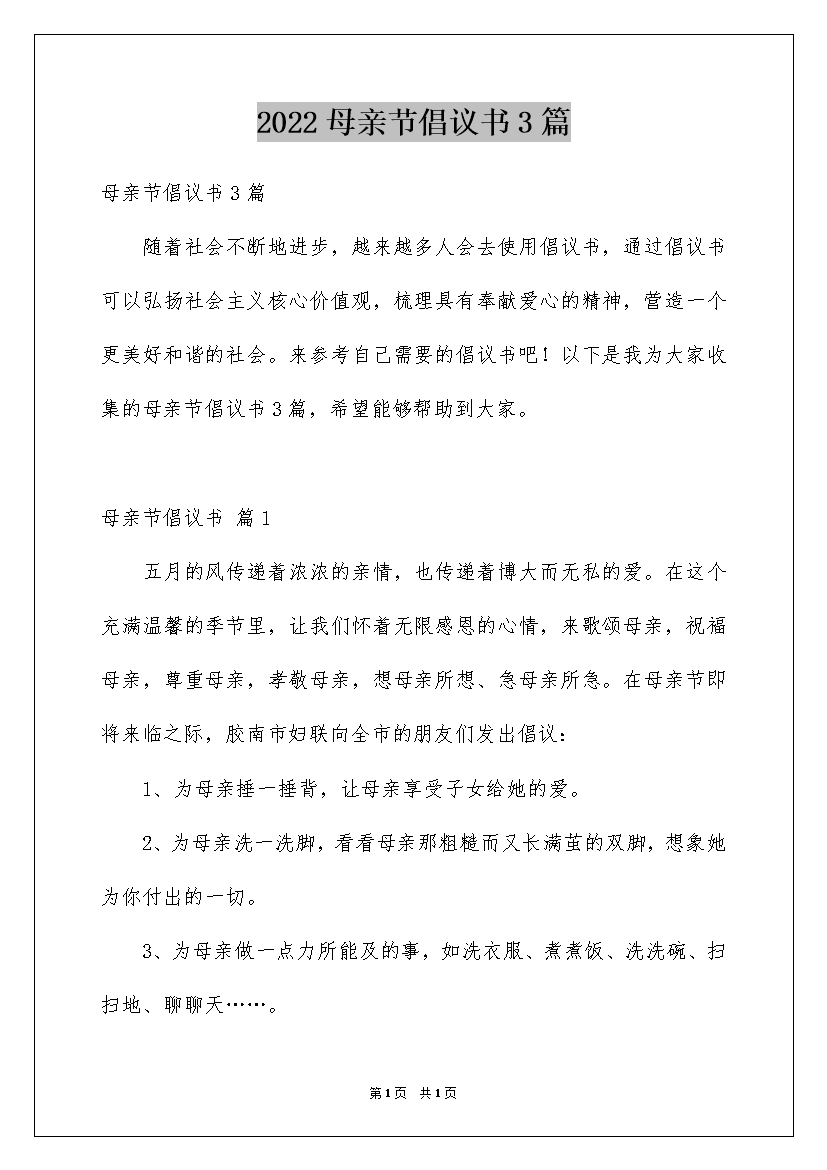2022母亲节倡议书3篇