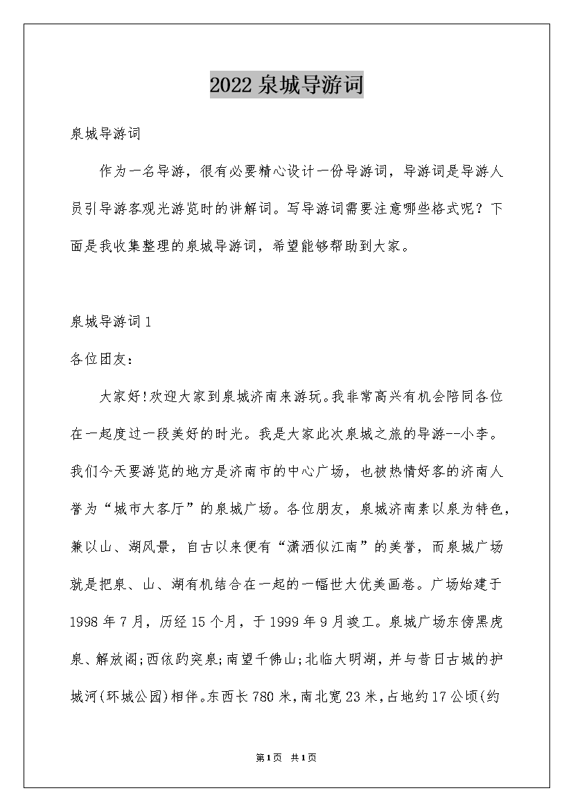 2022泉城导游词