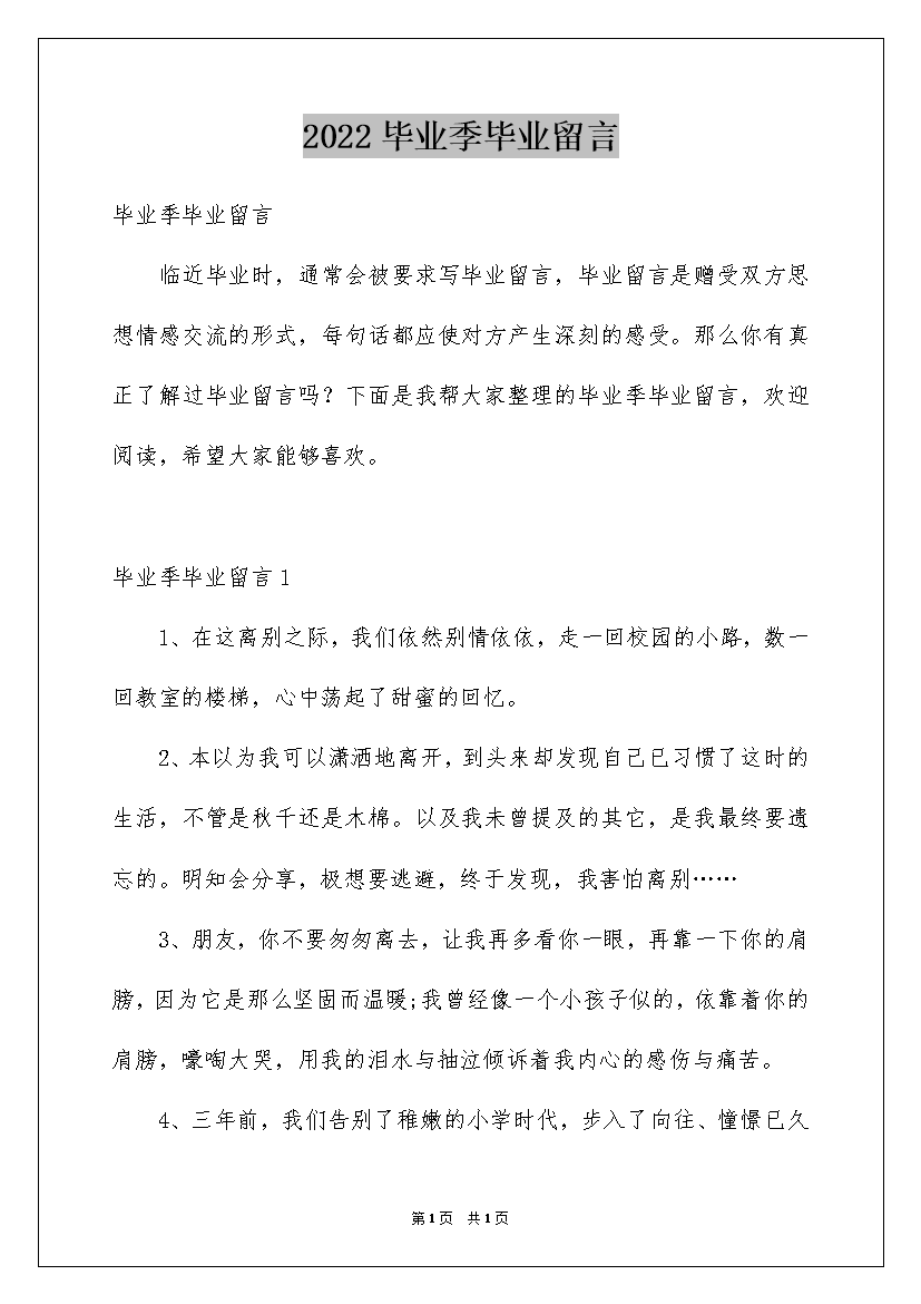 2022毕业季毕业留言