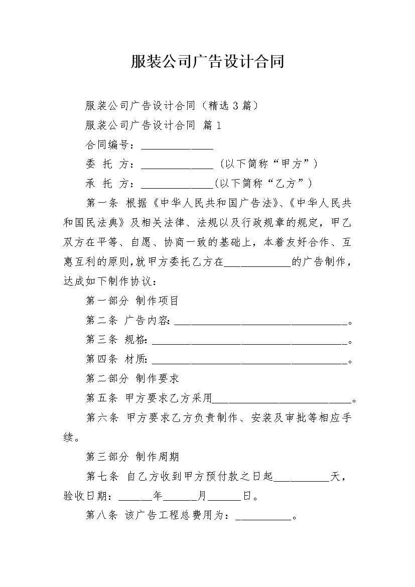 服装公司广告设计合同