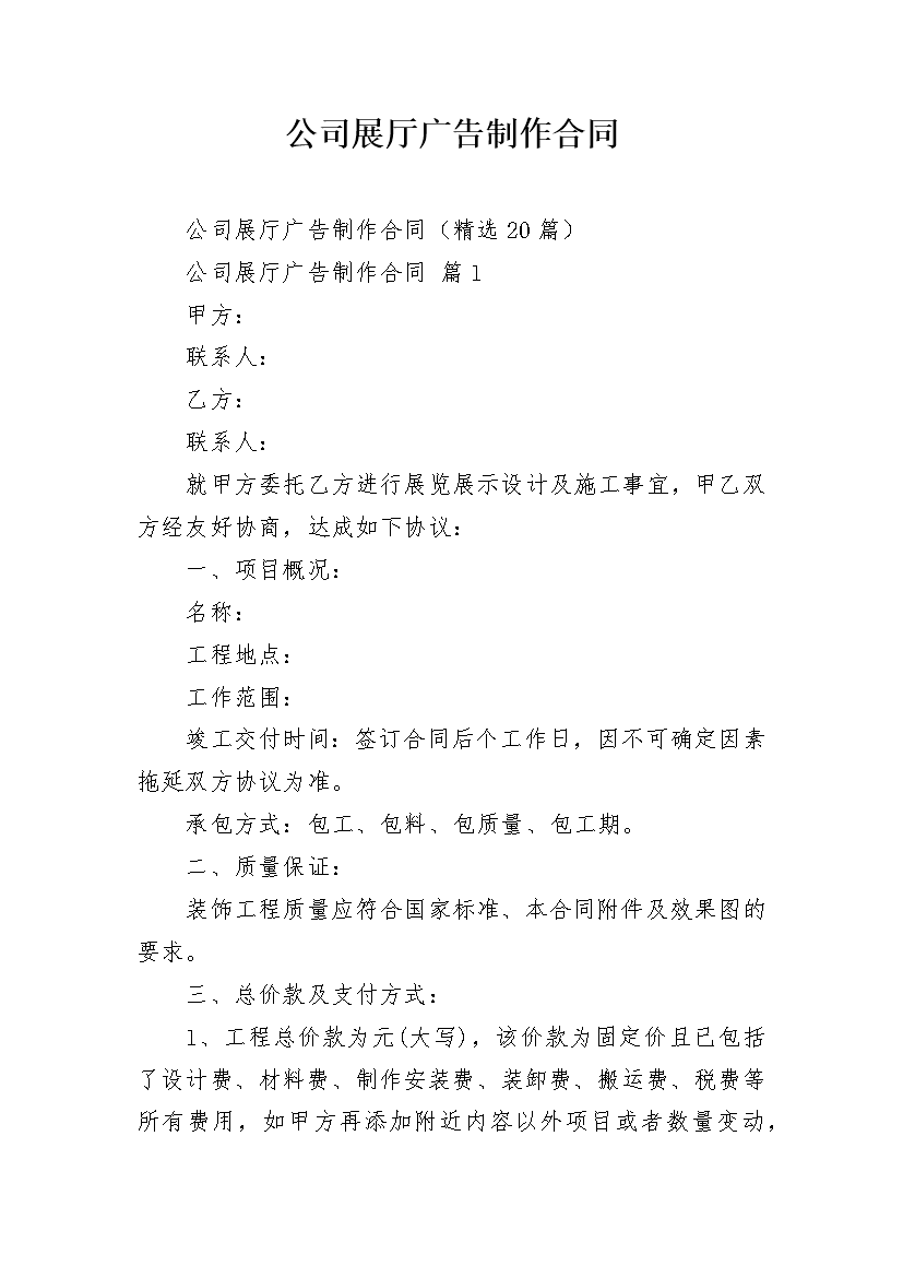 公司展厅广告制作合同
