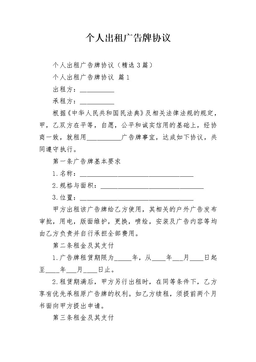 个人出租广告牌协议