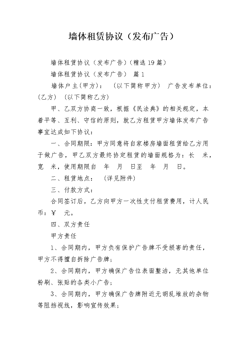 墙体租赁协议(发布广告)