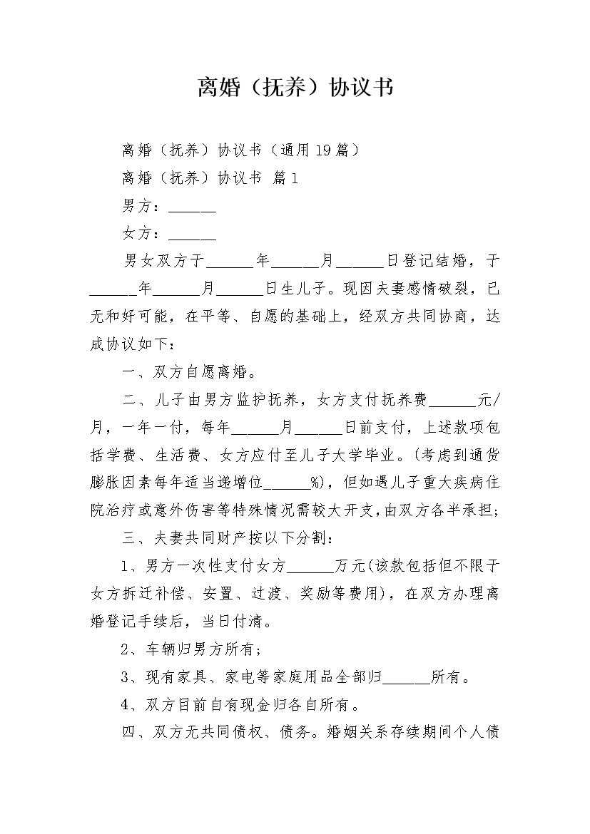 离婚(抚养)协议书