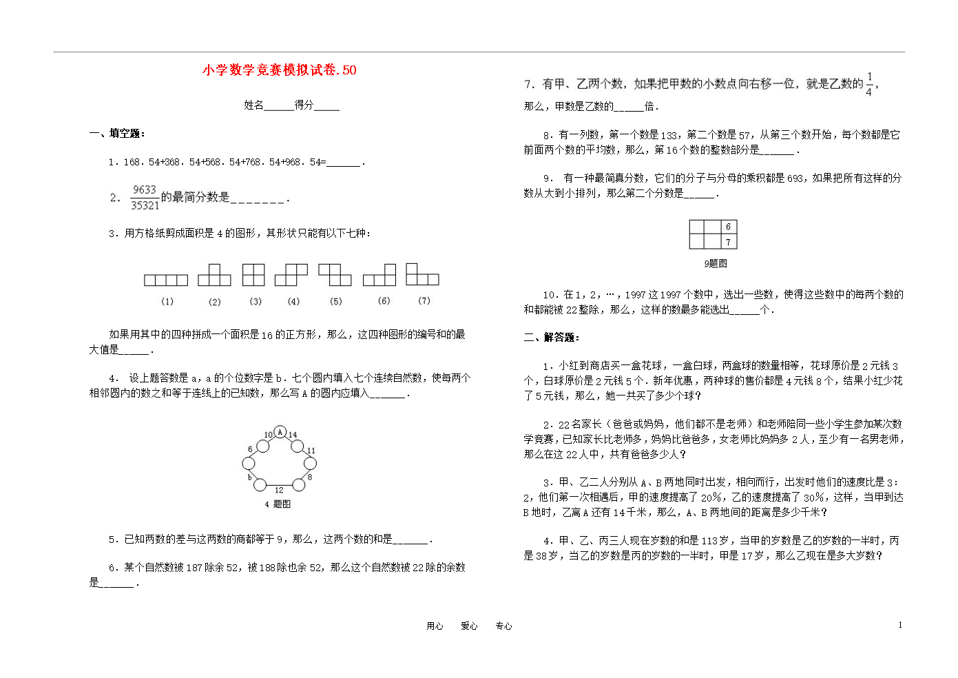 试题-全国-2011_小学数学竞赛模拟试卷(50)(无答案)