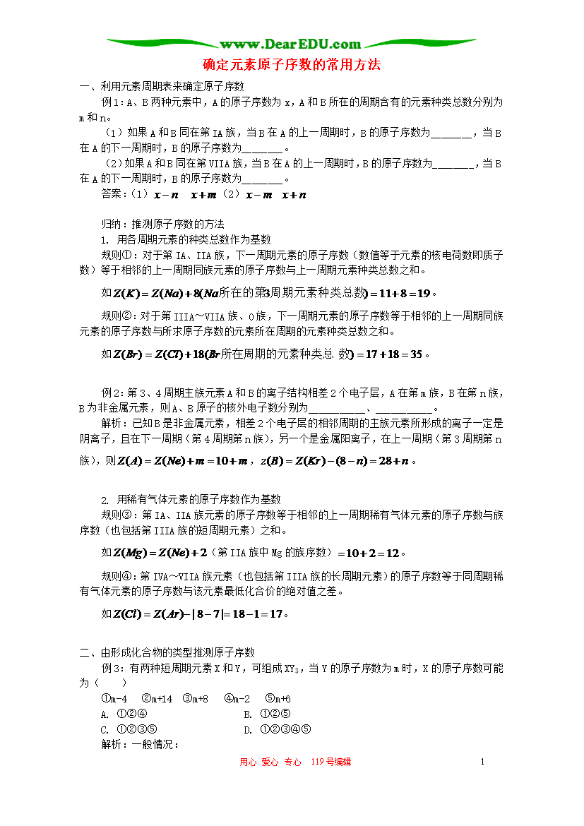 试题-全国-2006_确定元素原子序数的常用方法 学法指导 不分版本