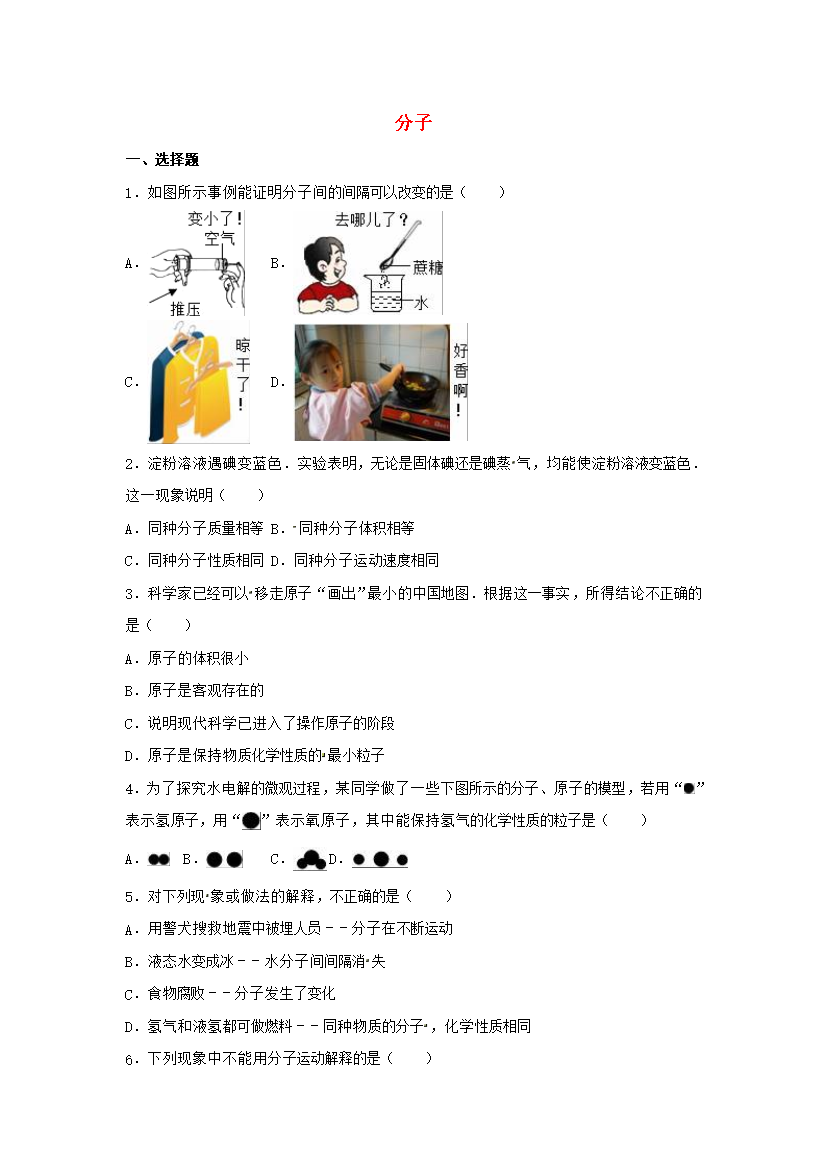 试题-四川-2017_四川省雅安市2016届中考化学 分子复习题