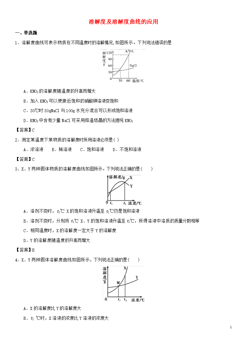 试题-全国-2018_2018年中考化学专题测试卷 溶解度及溶解度曲线的应用