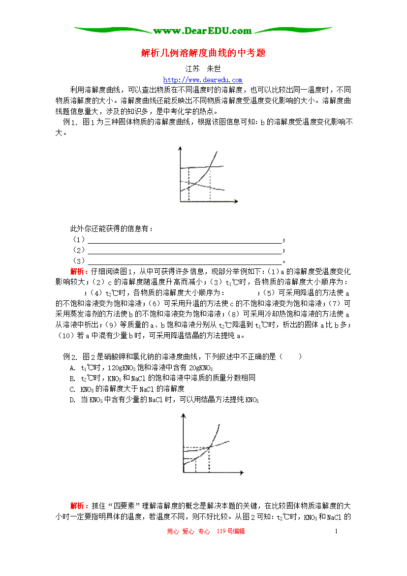 试题-全国-2007_解析几例溶解度曲线的中考题