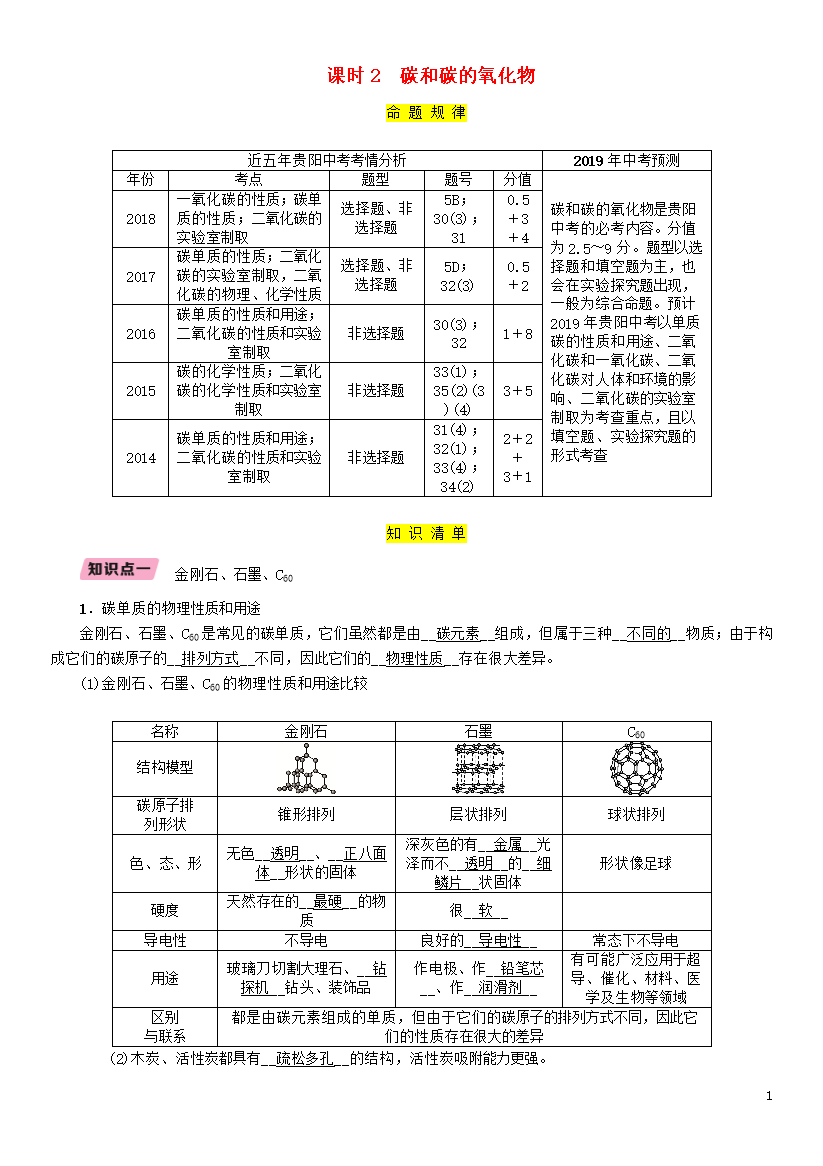 试题-全国-2019_(贵阳专版)2019年中考化学总复习 第1编 主题复习 模块1 身边的化学物质 课时2 碳和碳的氧化物(精讲)习题