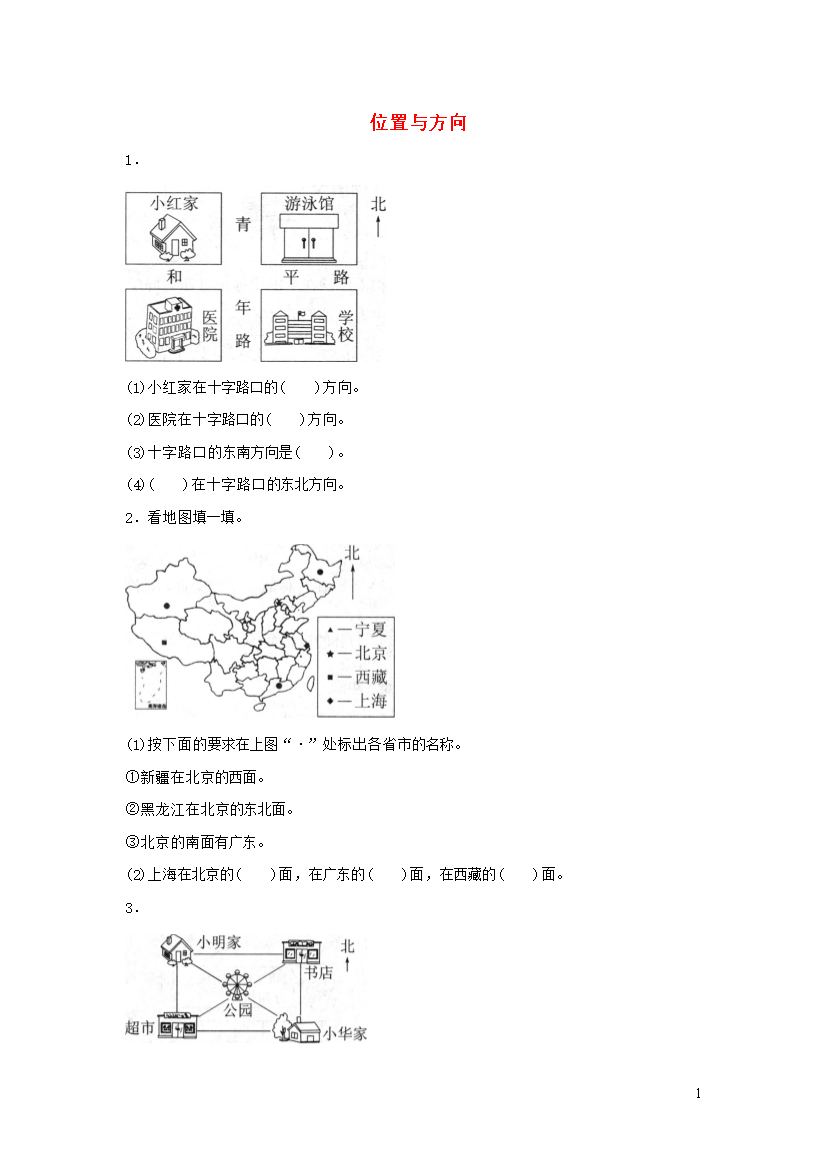 试题-全国-2019_三年级数学下册 1 位置与方向(一)创新练习 新人教版
