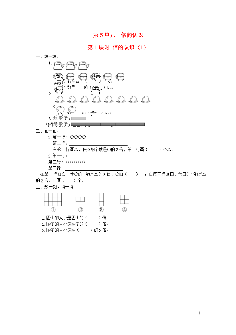 试题-全国-2019_三年级数学上册 第5单元 倍的认识 第1课时 倍的认识课堂作业设计(无答案) 新人教版