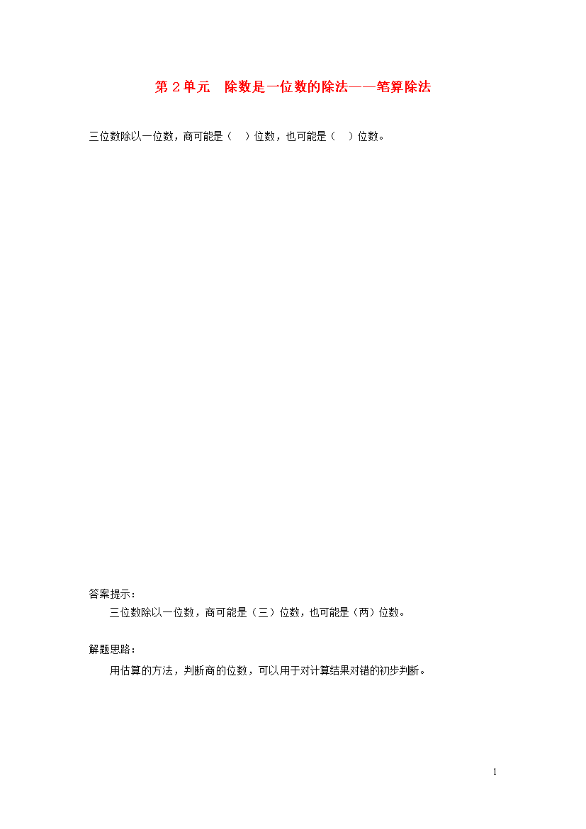 试题-全国-2019_三年级数学下册 2 除数是一位数的除法 笔算除法补充习题3 新人教版