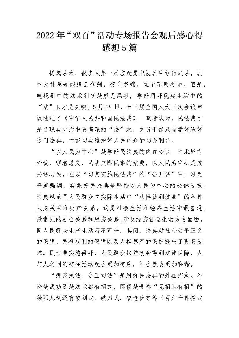 2022年“双百”活动专场报告会观后感心得感想5篇