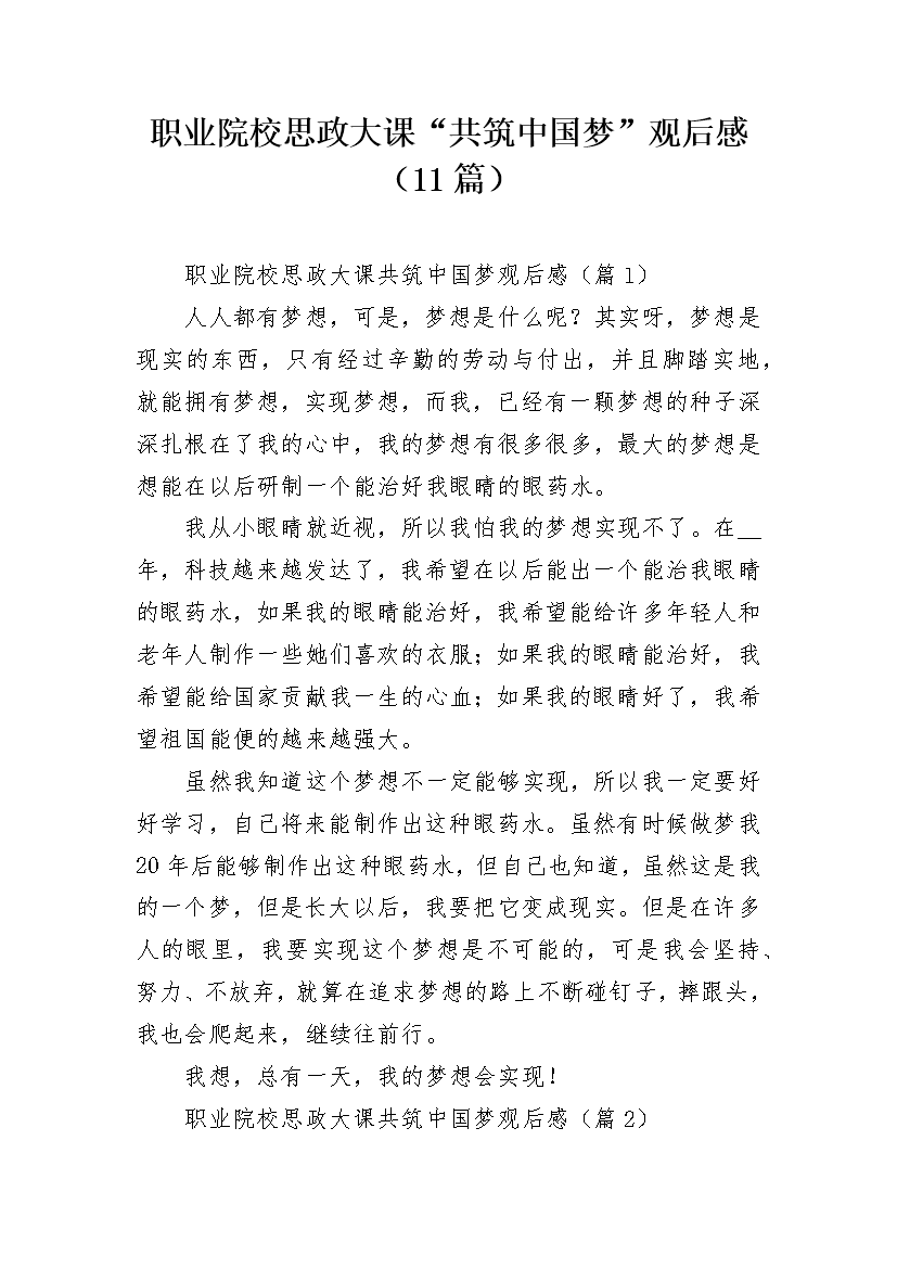 职业院校思政大课“共筑中国梦”观后感(11篇)