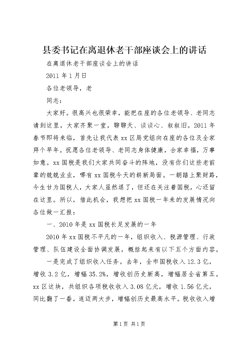 县委书记在离退休老干部座谈会上的讲话 (4)