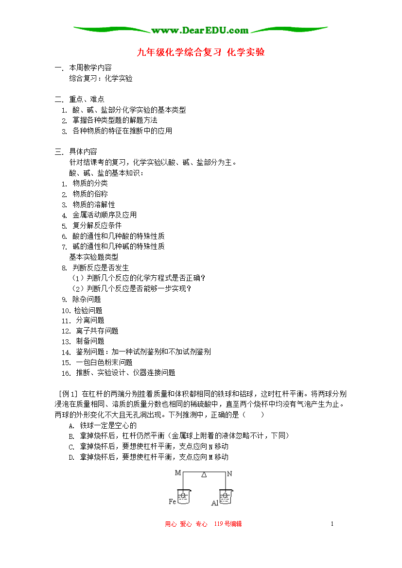 试题-全国-2007_九年级化学综合复习 化学实验 人教四年制版