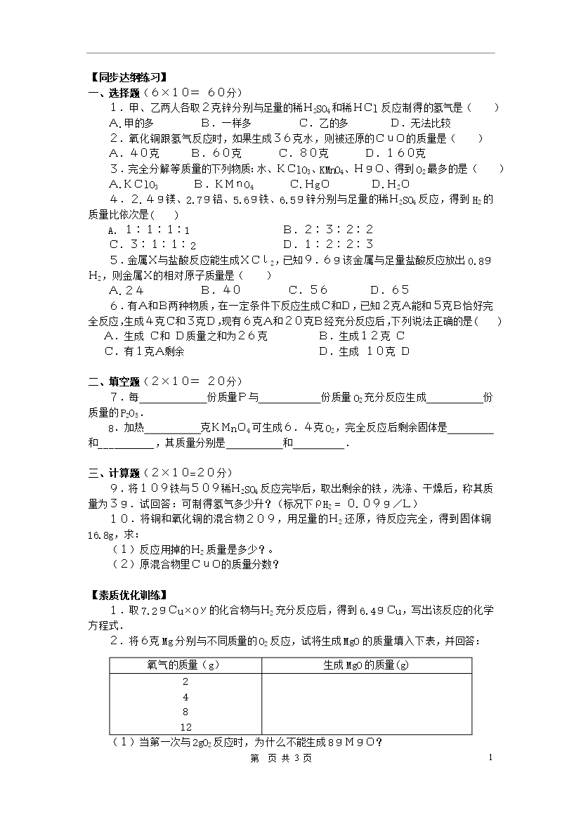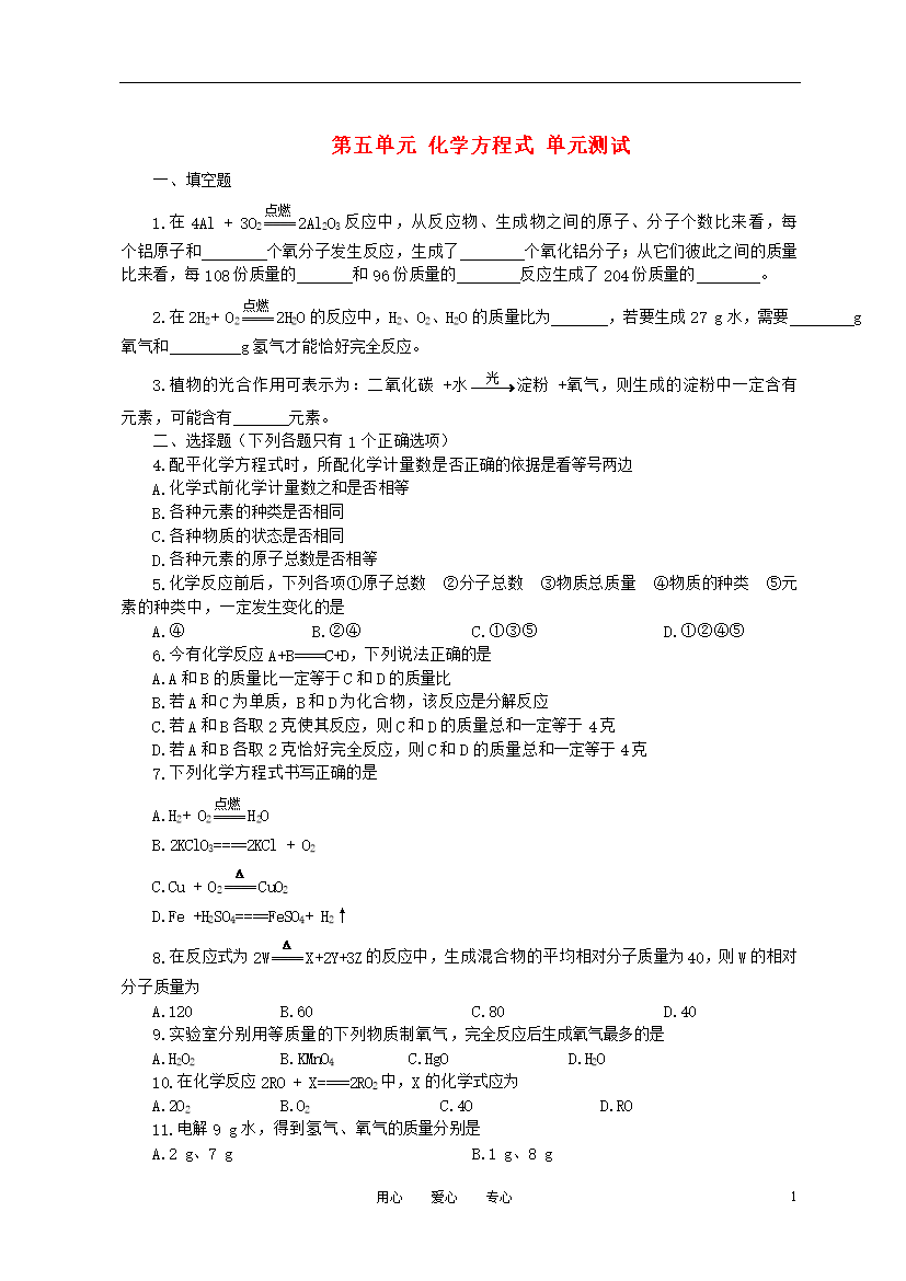 试题-全国-2011_九年级化学 第五单元 化学方程式 单元测试 人教新课标版