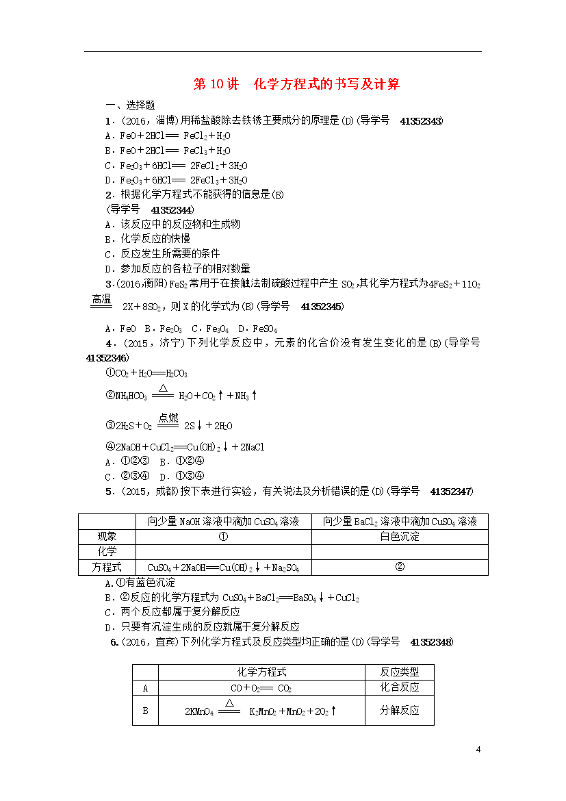 试题-全国-2016_2017版中考化学总复习 第5单元 化学方程式 第10讲 化学方程式的书写及计算考点跟踪 新人教版
