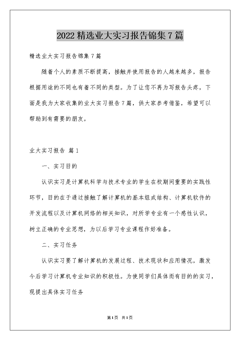 2022精选业大实习报告锦集7篇
