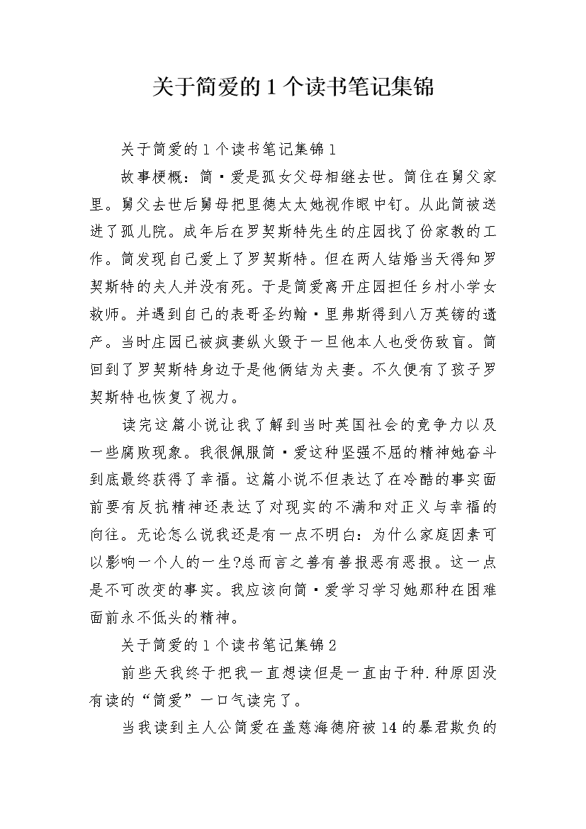 关于简爱的1个读书笔记集锦