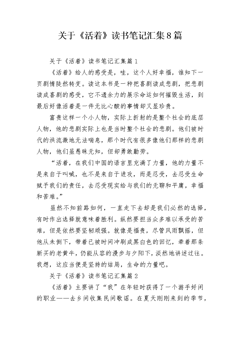 关于《活着》读书笔记汇集8篇