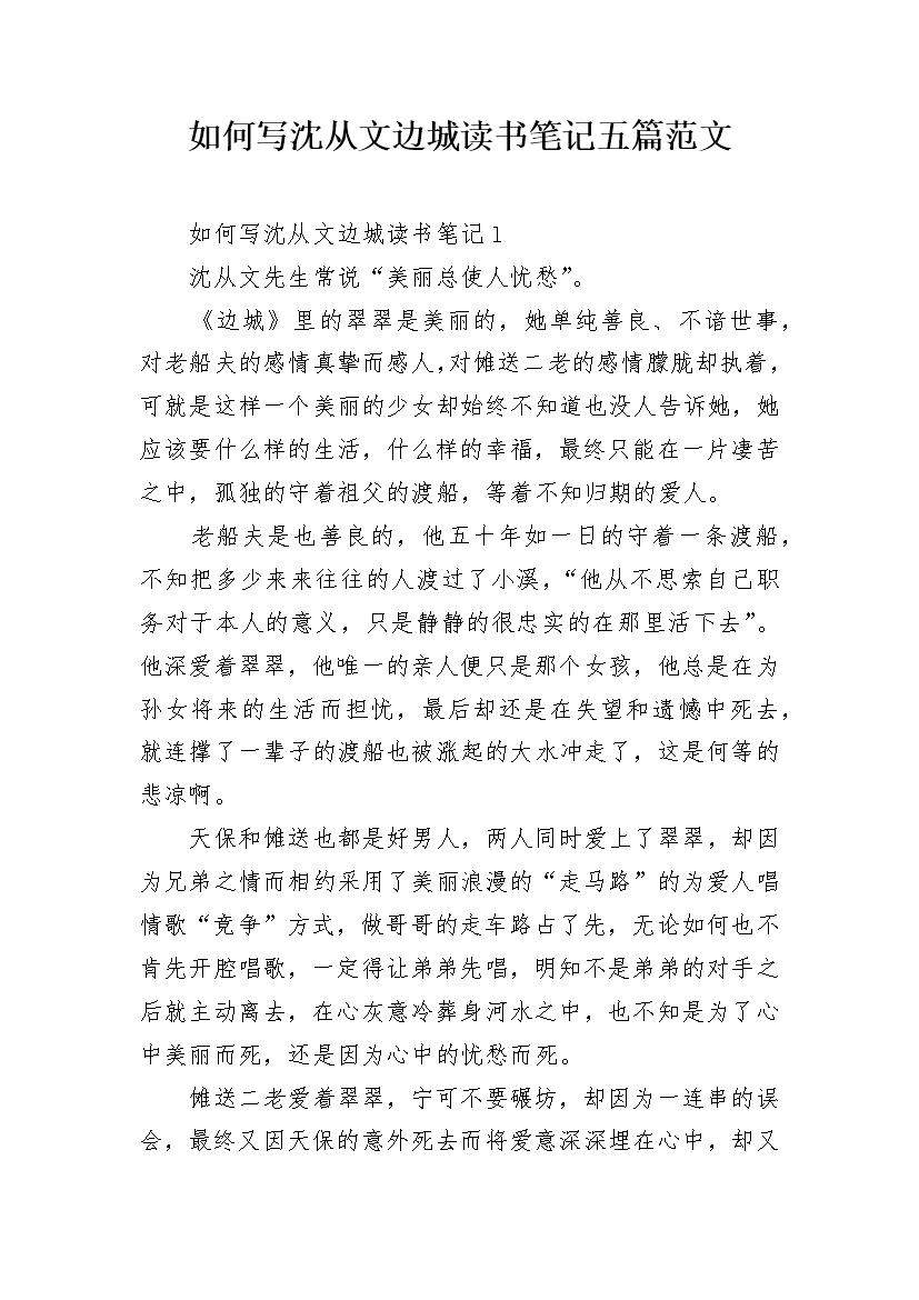 如何写沈从文边城读书笔记五篇范文