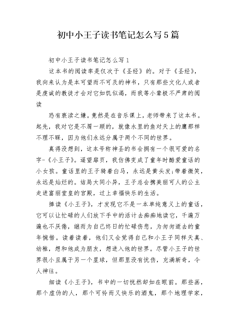 初中小王子读书笔记怎么写5篇