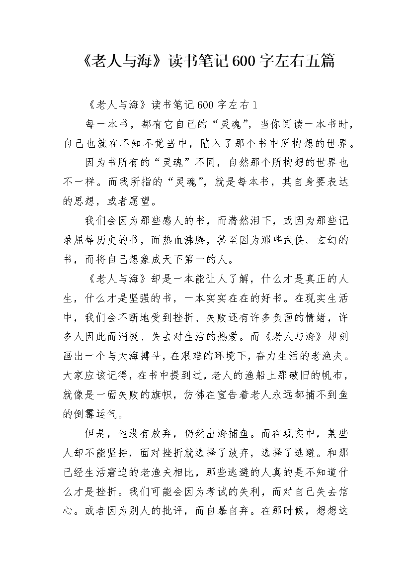《老人与海》读书笔记600字左右五篇
