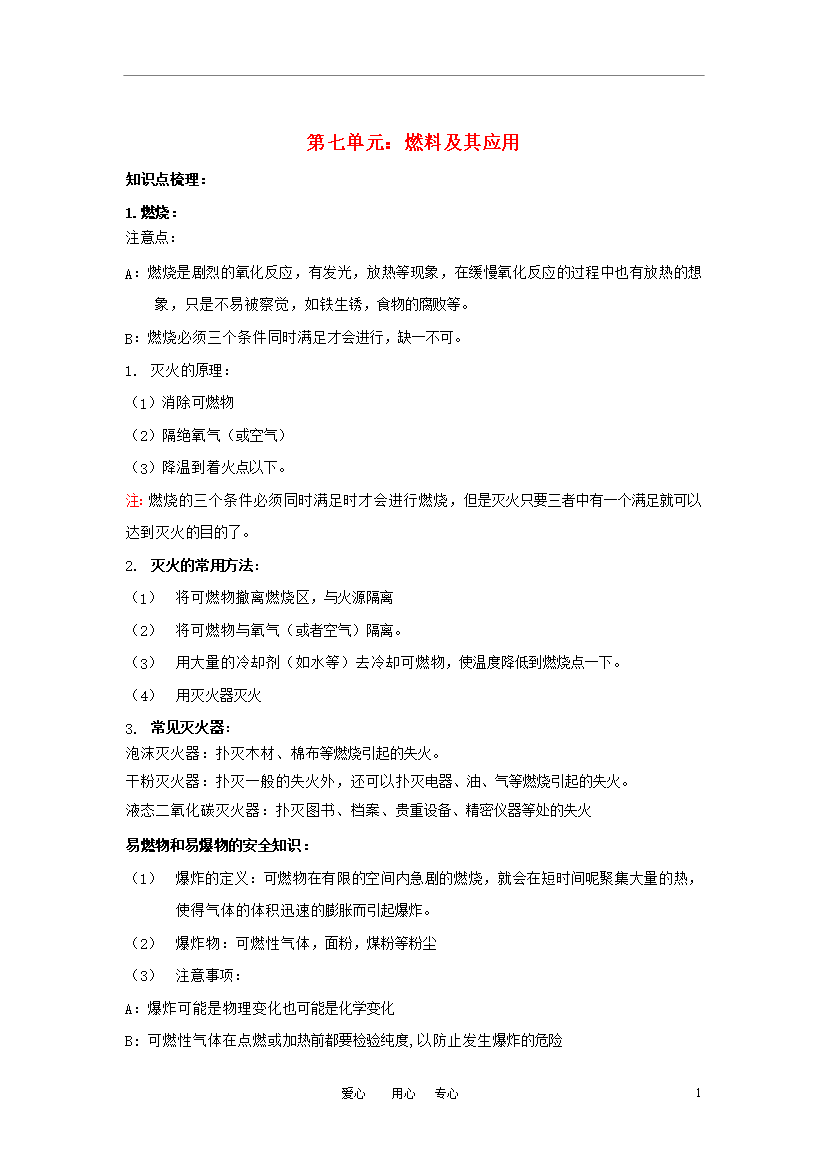 试题-全国-2011_中考化学一轮复习 第七讲 燃料及其应用练习 人教新课标版