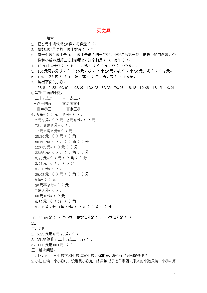 试题-全国-2015_2014秋三年级数学上册 1
