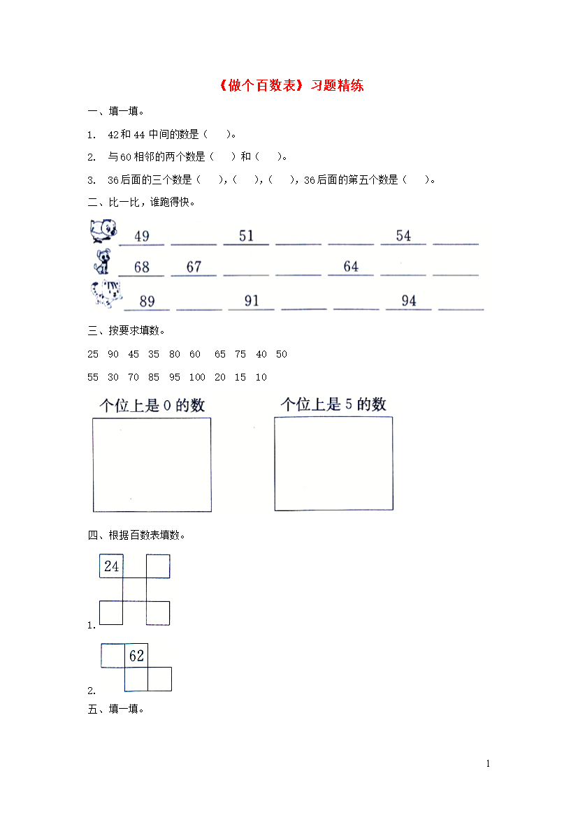 试题-全国-2019_一年级数学下册 第3单元 生活中的数 6 做个百数表习题精练(无答案) 北师大版