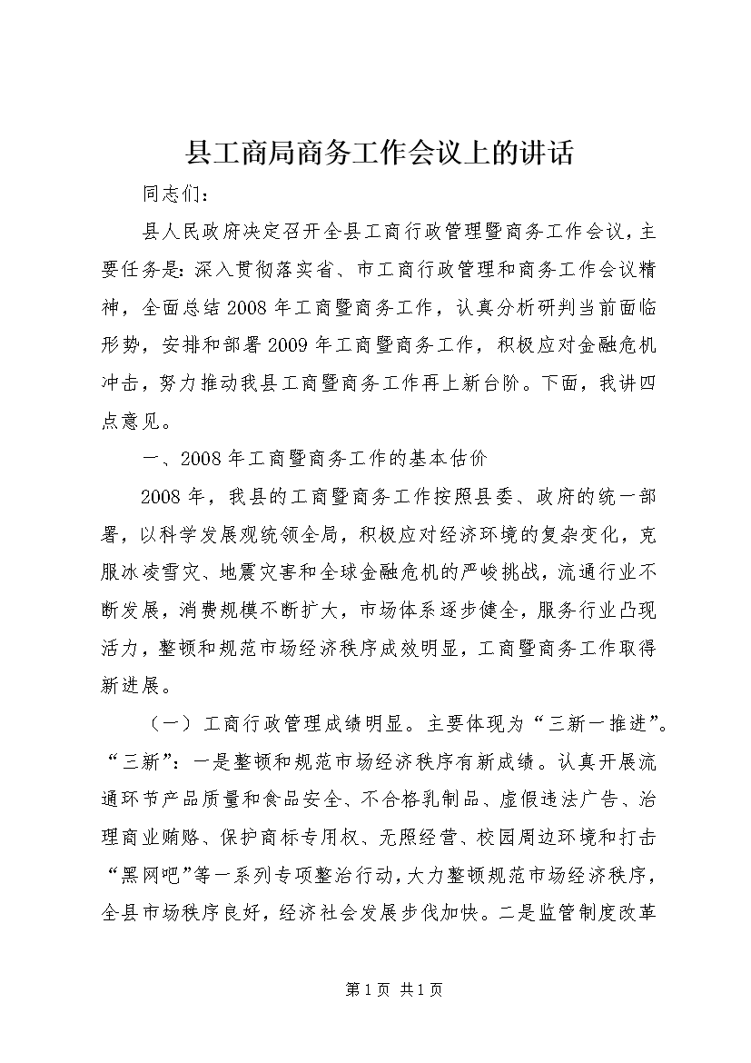 县工商局商务工作会议上的讲话