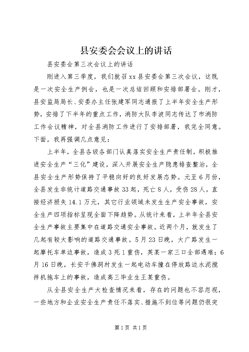 县安委会会议上的讲话_1
