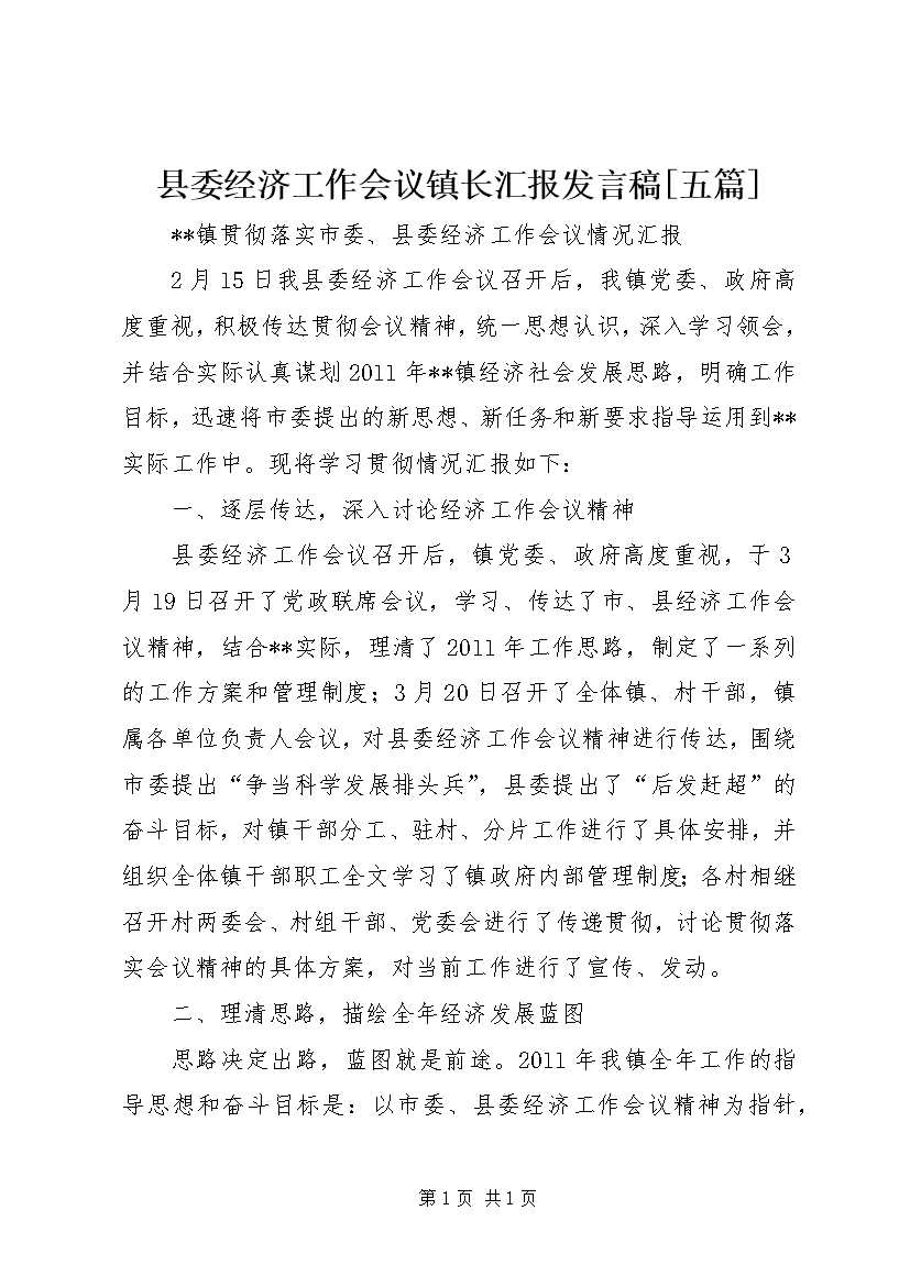 县委经济工作会议镇长汇报发言稿[五篇] (5)