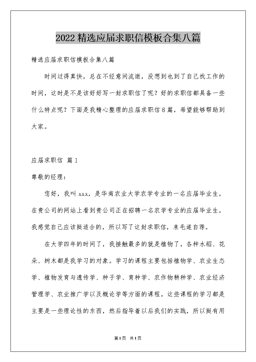 2022精选应届求职信模板合集八篇