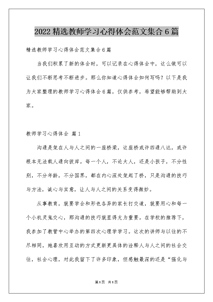 2022精选教师学习心得体会范文集合6篇