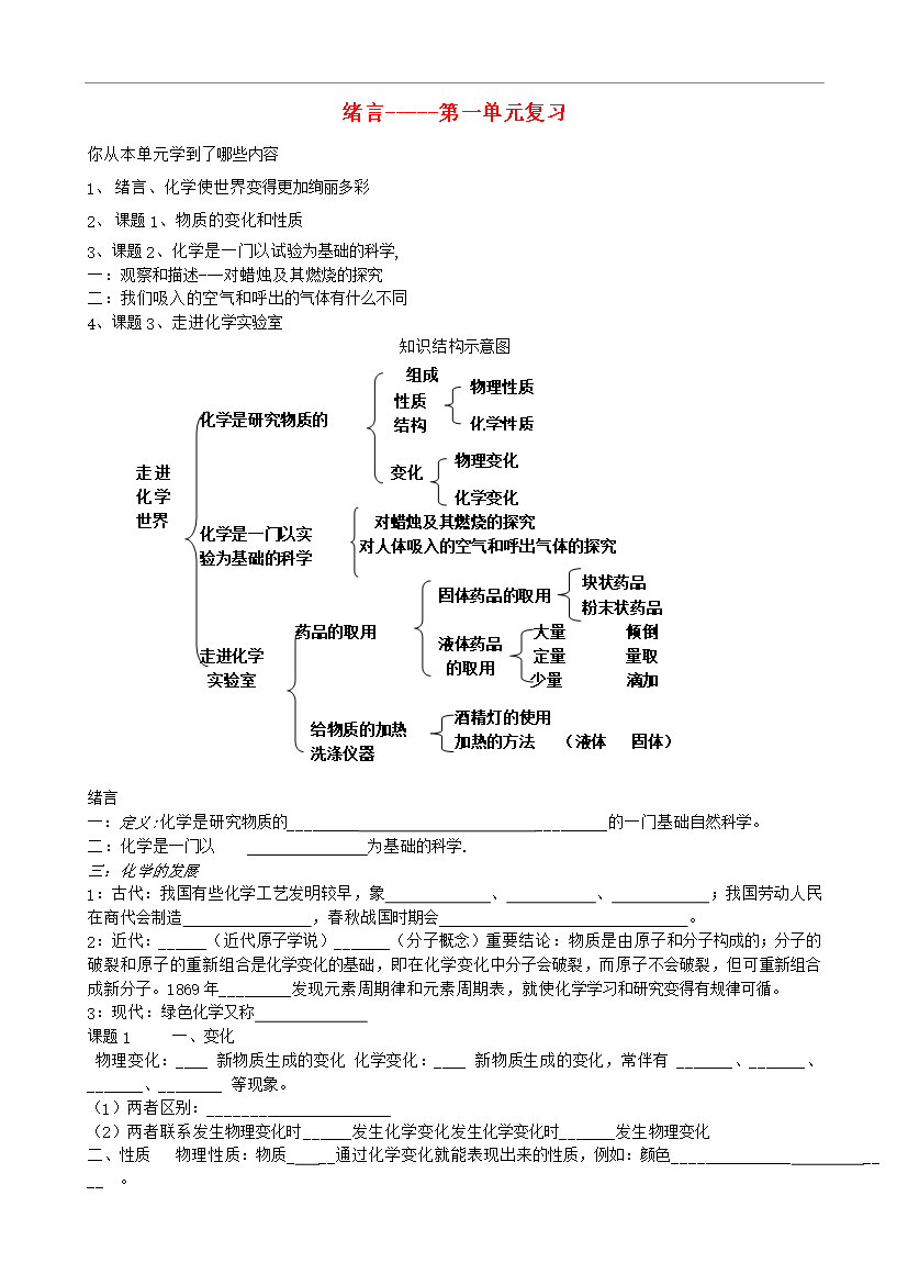 试题-全国-2011_九年级化学上册 绪言-第一单元复习 人教新课标版