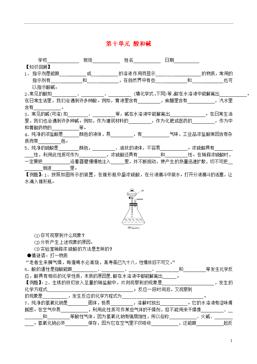 试题-江苏-2014_江苏省东台市头灶镇中学中考化学第一轮复习 第十单元 酸和碱 新人教版
