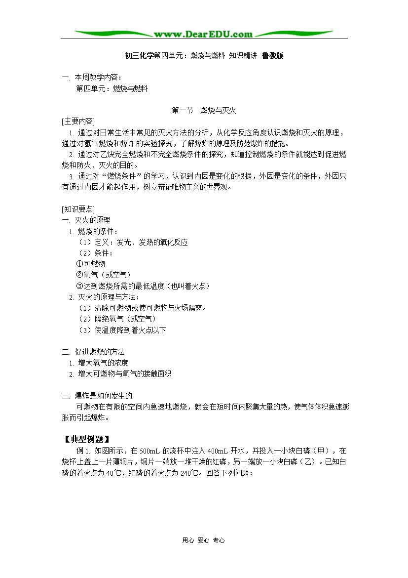 试题-全国-2007_初三化学第四单元:燃烧与燃料 知识精讲 鲁教版
