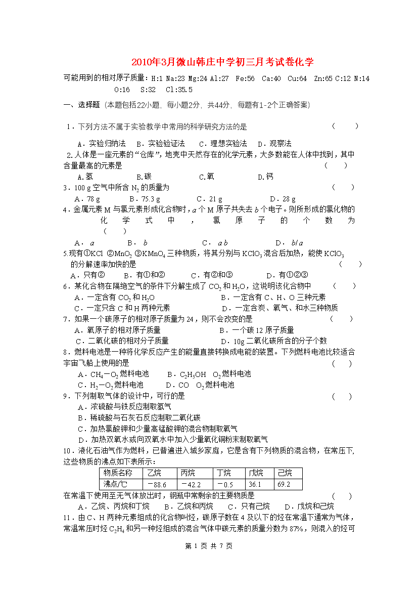 试题-全国-2010_九年级化学月考试卷鲁教版
