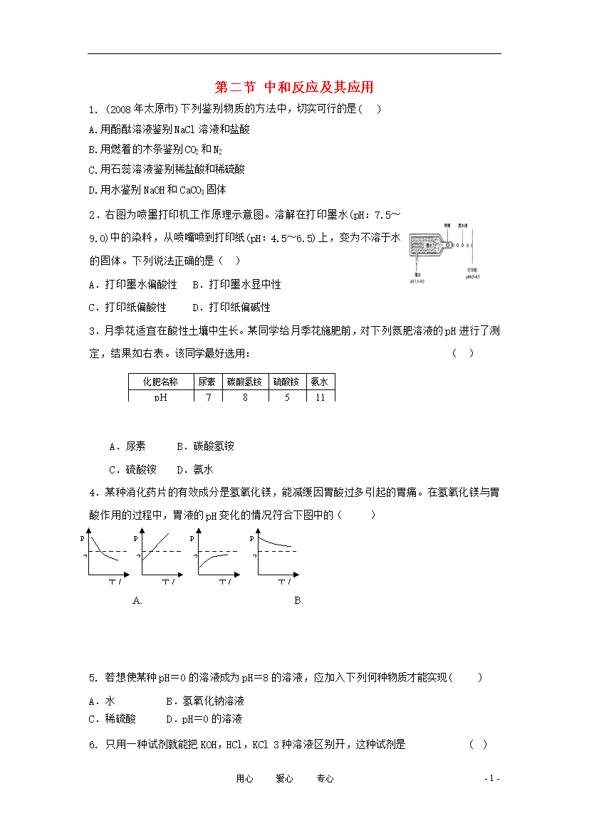 试题-全国-2012_九年级化学上册《中和反应及其应用》同步练习1 鲁教版
