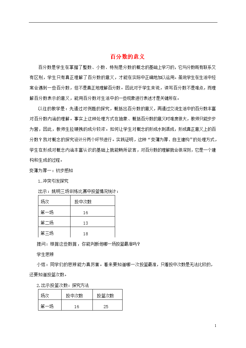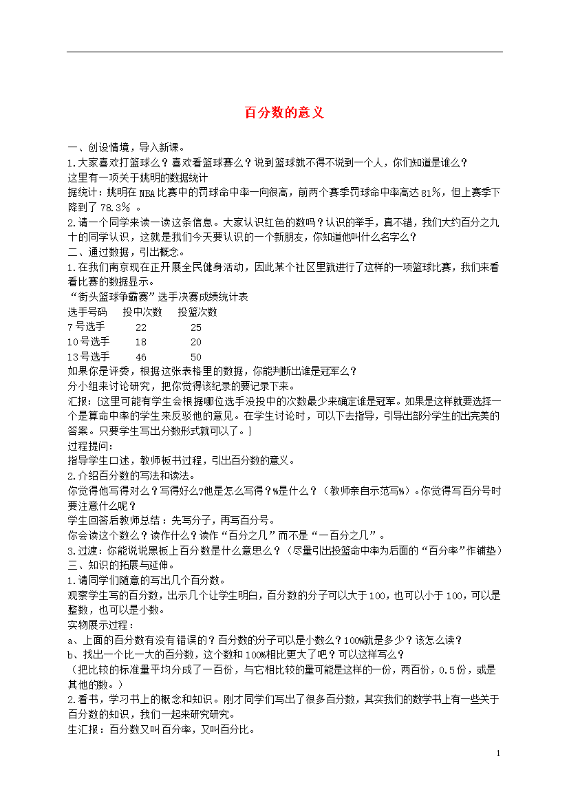 教案-全国-2012_六年级数学下册 百分数的意义教学设计 西师大版
